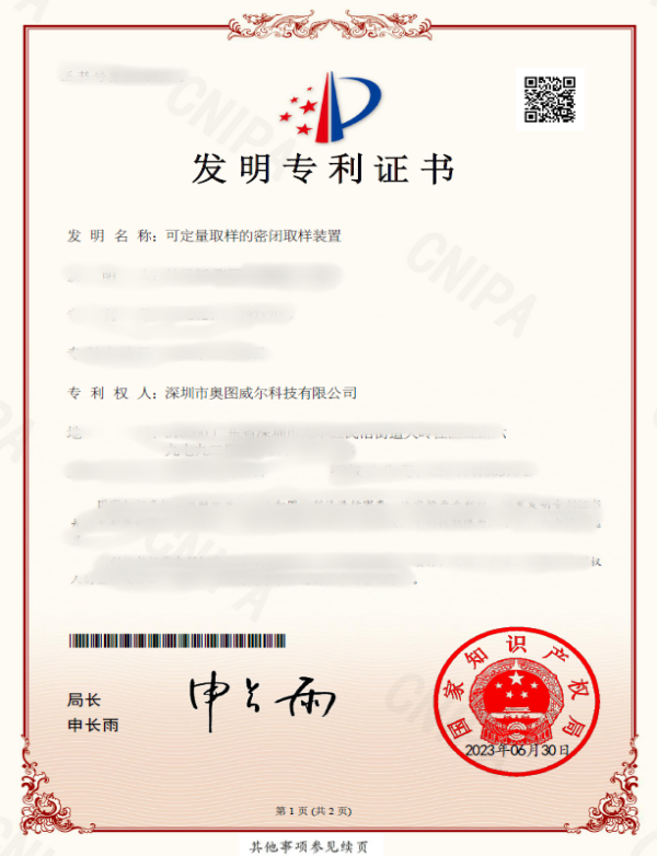 • 可定量取样的密闭取样装置