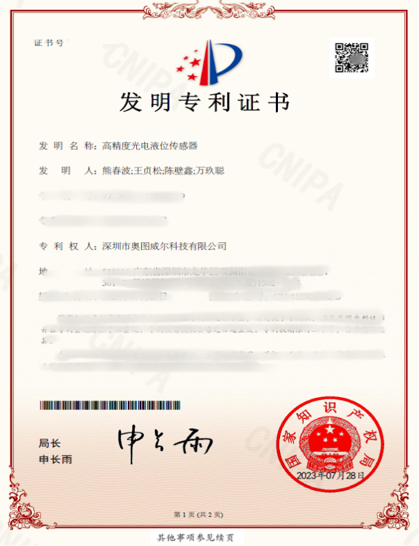 • 高精度光电液位传感器